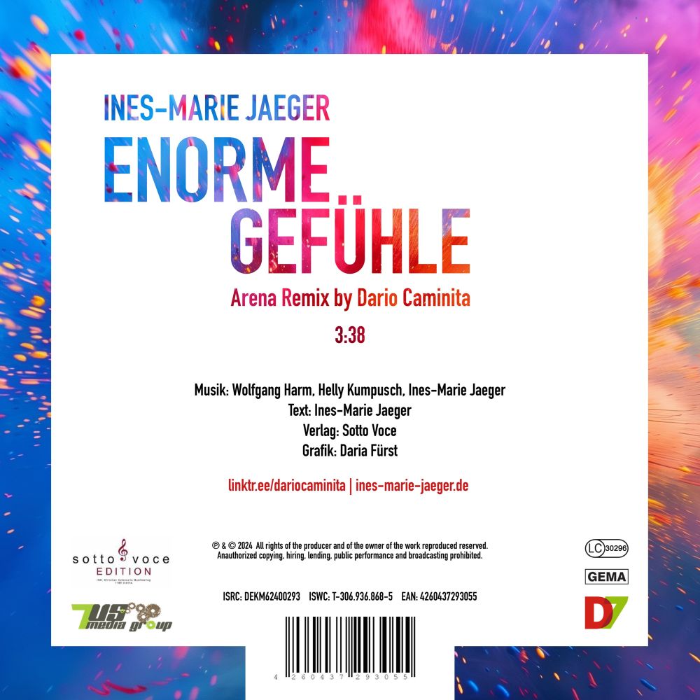 Enorme Gefühle im ARENA-REMIX by Dario Caminita mit Ines-Marie JAEGER ist ein druckvoller Popschlager so wie die Überschrift betitelt, genau das richtige für alle Arten von Sport & Event & Party, Clubs, und Tanzflächen!